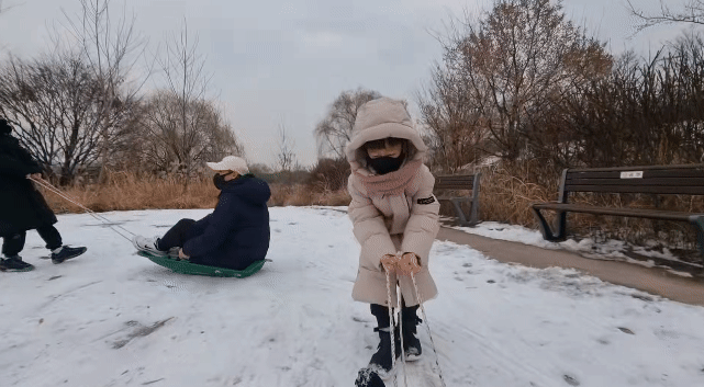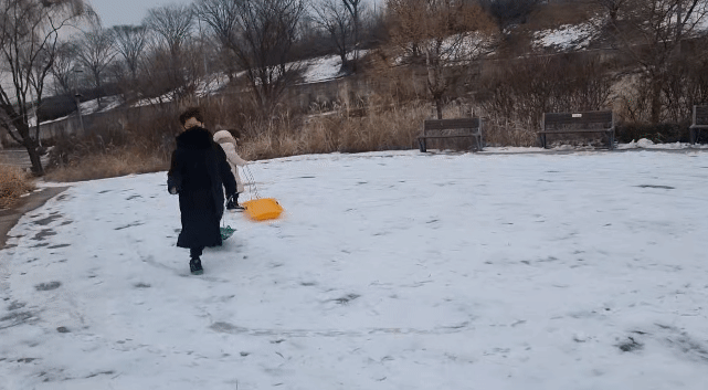 눈썰매를 제대로 즐기는 아들 ㅋㅋ