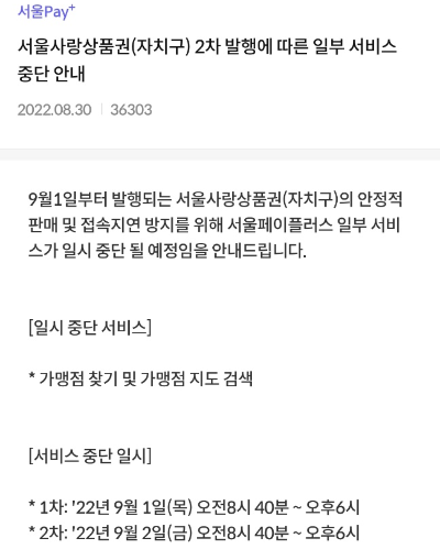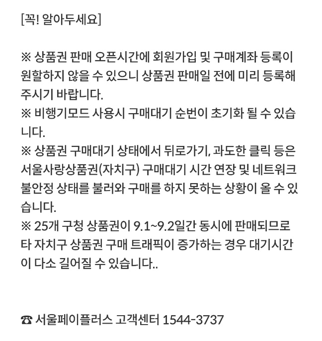 서울사랑 상품권 지역구가 9/1일 발행한다고