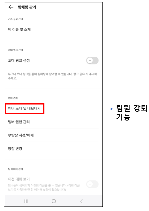 팀채팅은 방장이 좀 더 강력하게 멤버를 관리할 수 있는 기능을 갖춘 채팅방입니다.