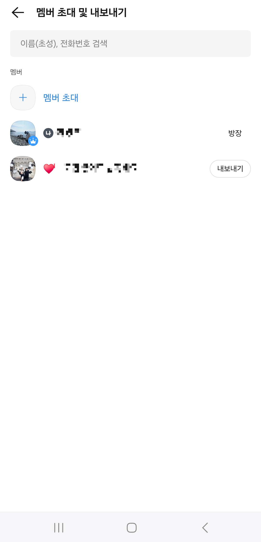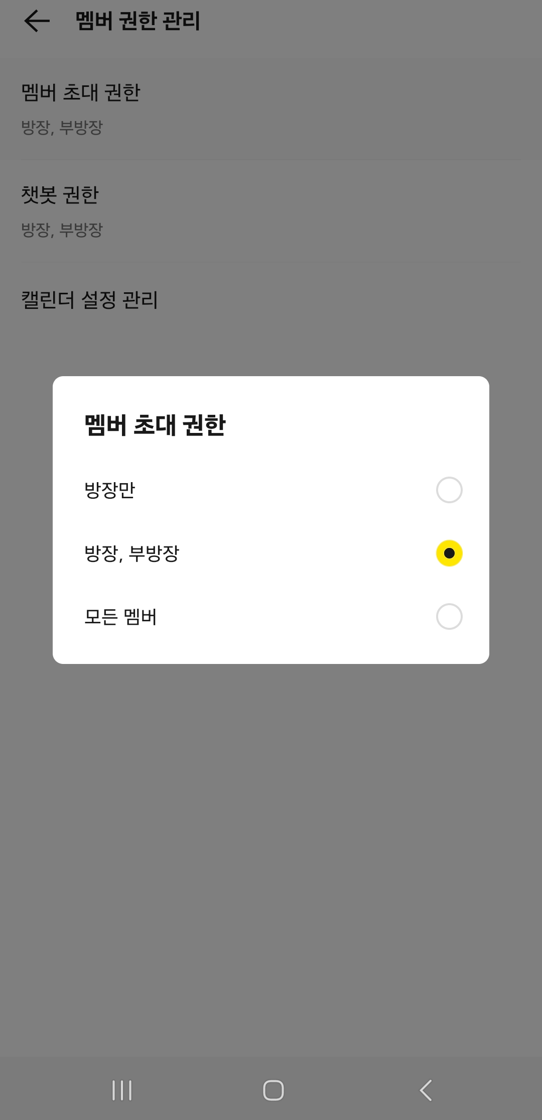 멤버권한관리를 클릭시 초대를 방장만 가능하게 할지