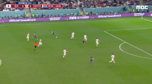 미토마의 드리블 돌파에 이어