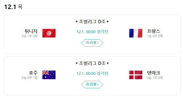 | 카타르월드컵A조 순위 카타르 1 VS 3 세네갈 네덜란드 1 VS 1 에콰도르 경기결과 개최국 탈락확정 (0) | 2022.11.26 |