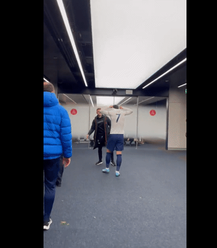 손흥민이 트리피어에게 셔츠를 건네는 모습