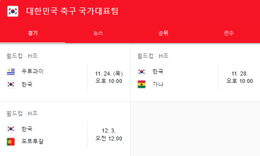 12/03(토) 24:00 대한민국 VS 포르투칼